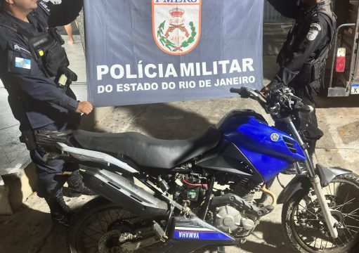 Equipes da motopatrulha e do setor de inteligência do 8º BPM suspeitaram de dois homens em uma motocicleta que trafegava com a placa encoberta por uma sacola. Ao receberem ordem de parada, os ocupantes fugiram em alta velocidade. Durante o acompanhamento, nas proximidades do SENAI Campos, o passageiro arremessou um simulacro de pistola, que foi recolhido pelos policiais.