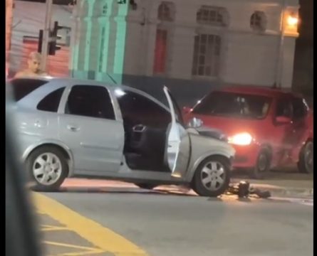 O acidente aconteceu na noite de quarta-feira (28) e foi registrado em vídeo por pessoas que passavam pelo local. De acordo com testemunhas, um dos carros teria avançado o sinal fechado quando foi atingido pelo outro que estava com acesso liberado para trafegar.