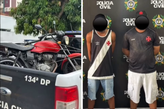 Ainda segundo a Polícia, durante a abordagem policial, foi observado que a numeração da motocicleta era compatível com o veículo roubado da vítima. Após a verificação, os homens foram custodiados com o veículo para a Delegacia do Centro, para a formalização dos atos de polícia.