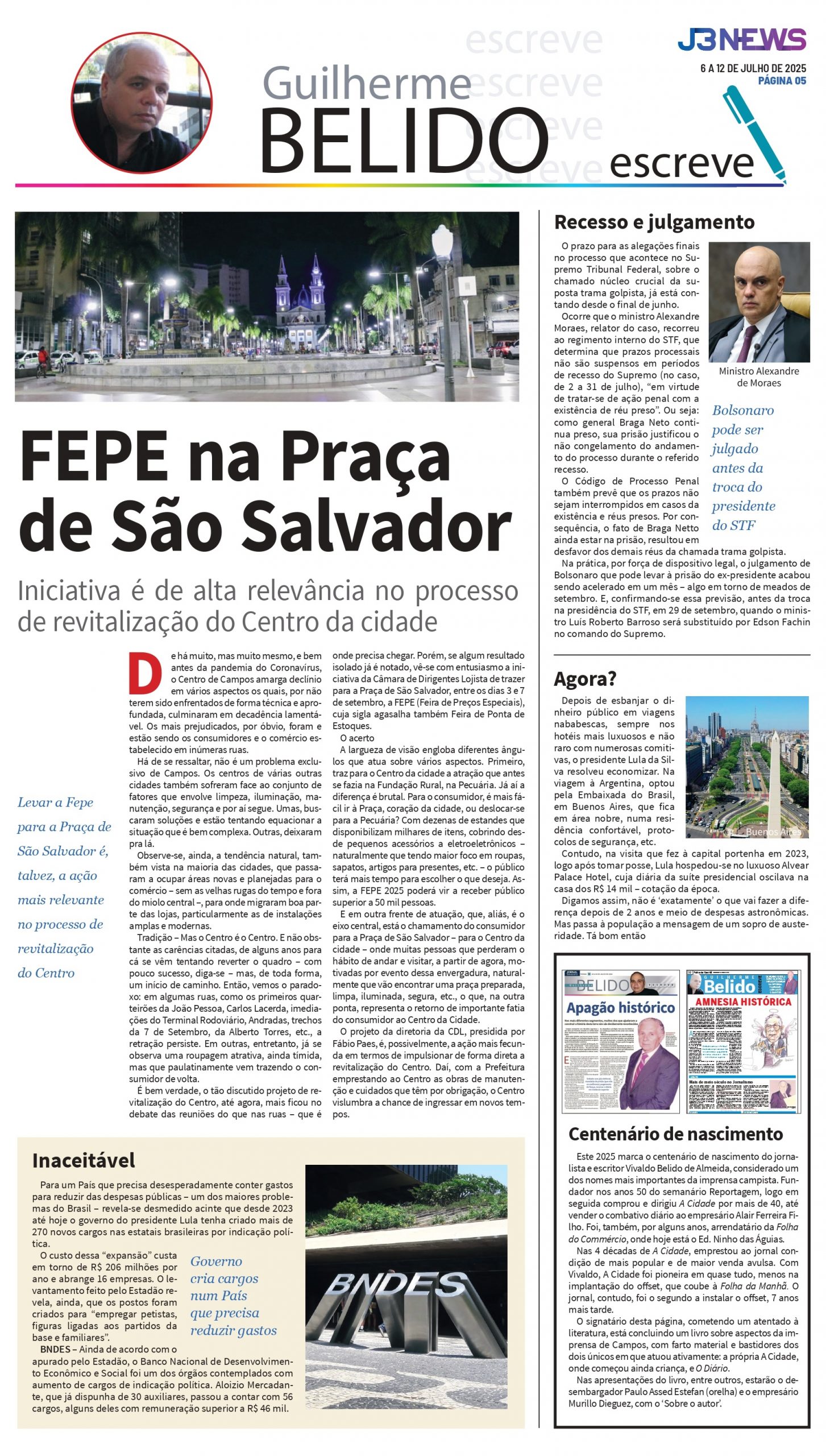 Este ano de 2025 marca o centenário de nascimento do jornalista e escritor Vivaldo Belido de Almeida, considerado um dos nomes mais importantes da imprensa campista. Fundador, nos anos 50, do semanário Reportagem – que circulou às segundas por mais de duas décadas – logo em seguida comprou e dirigiu A Cidade por mais de 40 anos, até vender o combativo diário ao empresário Alair Ferreira Filho. Foi, também, por alguns anos, arrendatário da Folha do Commércio, onde hoje está o Ed. Ninho das Águias.