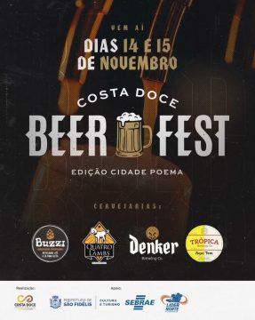 Nos dias 14 e 15 de novembro, São Fidélis vai receber o Costa Doce Beer Fest, evento que vai reunir cervejarias artesanais, bandas de rock, expositores de gastronomia e atrações culturais. A proposta é valorizar os produtores locais e fortalecer o turismo na região turística Costa Doce, que abrange municípios do Norte e Noroeste Fluminense.
