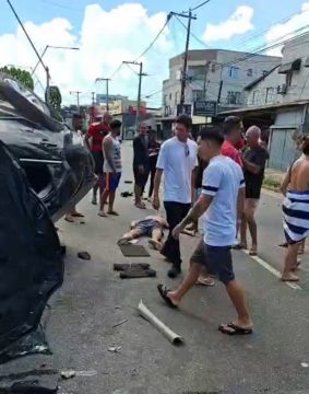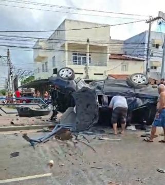 Um grave acidente foi registrado na tarde deste domingo (5) na Avenida 28 de Março, na altura do bairro Turf Club, em Campos dos Goytacazes. Com o impacto da colisão, um dos motoristas foi arremessado para fora do veículo, que ainda chegou a capotar após atingir a proteção da ciclovia. A causa do acidente está sendo apurada.