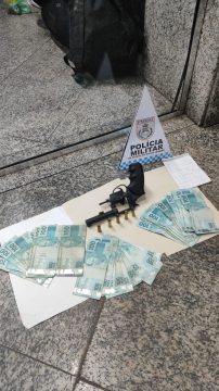 A polícia apreendeu um revólver calibre .38 com numeração raspada e mais de R$ 3 mil em espécie.