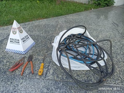 Cabos e ferramentas apreendidos pela PM