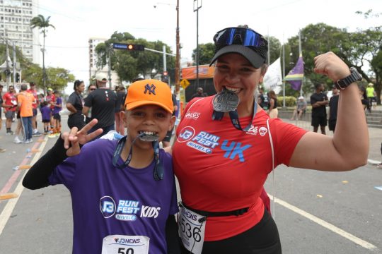 Completando 10 anos neste domingo (5), Fabricio Tavares foi convidado pela mãe a correr. “Já pratico vários esportes. Faço pedal há um ano, remo há oito meses e comecei a correr em julho. O Fabricio joga futebol e rema. Essa seria a minha primeira corrida e chamei ele para correr, no dia do aniversário dele. Assim, pudemos comemorar juntos”, comentou Adriana Simões, que correu 4k junto ao filho Fabricio. “Sensação muito boa. Me senti muito livre”, disse Fabricio”.