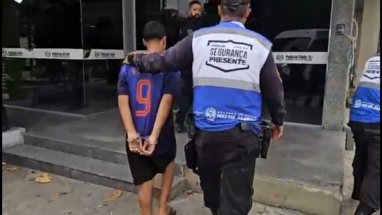 Ainda segundo a polícia, foi necessário o uso de algemas devido ao receio de fuga, medida adotada para garantir a segurança da equipe. Na DP, o jovem também foi autuado por porte de droga para consumo pessoal.