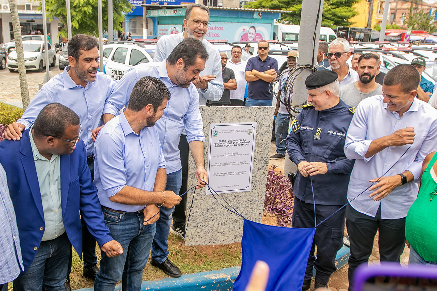 A Prefeitura de Macaé e o Governo do Estado do Rio de Janeiro lançaram, nesta quarta-feira (4), a pedra fundamental do novo Batalhão Rodoviário do município. A cerimônia foi realizada na Praça Washington Luiz, no Centro, e contou ainda com a entrega de 20 viaturas blindadas à Polícia Militar do Estado do Rio de Janeiro (PMERJ).