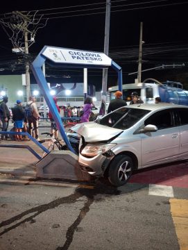 O motorista de um Chevrolet Prisma perdeu o controle do veículo, na noite de quarta-feira (13), ao trafegar pela Avenida 28 de Março, em Campos dos Goytacazes, e invadiu a Ciclovia Patesko, que separa as duas pistas de uma das vias mais movimentadas da cidade.