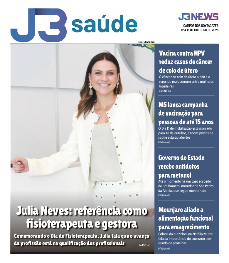 O caderno especial do J3 Saúde já está disponível nas bancas e em versão digital no site do J3News. A matéria de destaque traz a médica Julia Neves, que é referência na fisioterapia em Campos e administra duas unidades da Fisioclínica e a Fisiostar. Em comemoração do Dia do Terapeuta, ela fala que o avanço da profissão está na qualificação dos profissionais.