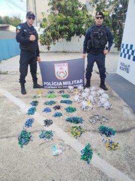 Durante buscas no local, os agentes encontraram 4.089 pinos de cocaína, 20 buchas de maconha e R$ 210 em espécie. Ninguém foi preso.