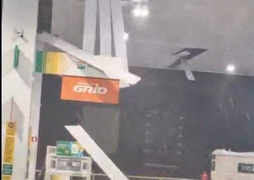 Cobertura de posto é destelhada e bairros ficam sem energia no Sul do ES